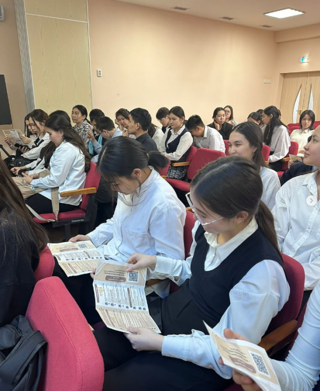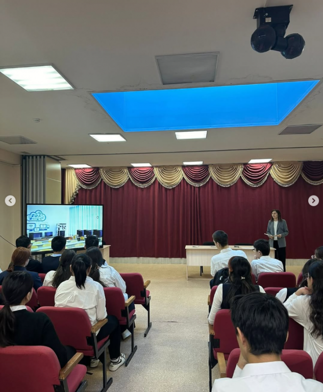 Кездесу барысында оқушыларға колледж туралы бейнеролик көрсетіліп, қызықтыратын сұрақтарына жауап берілді.
